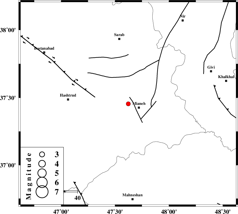 N_TABRIZ_F1 (Length: 222 km) , Distance to epicenter: 28 km | |