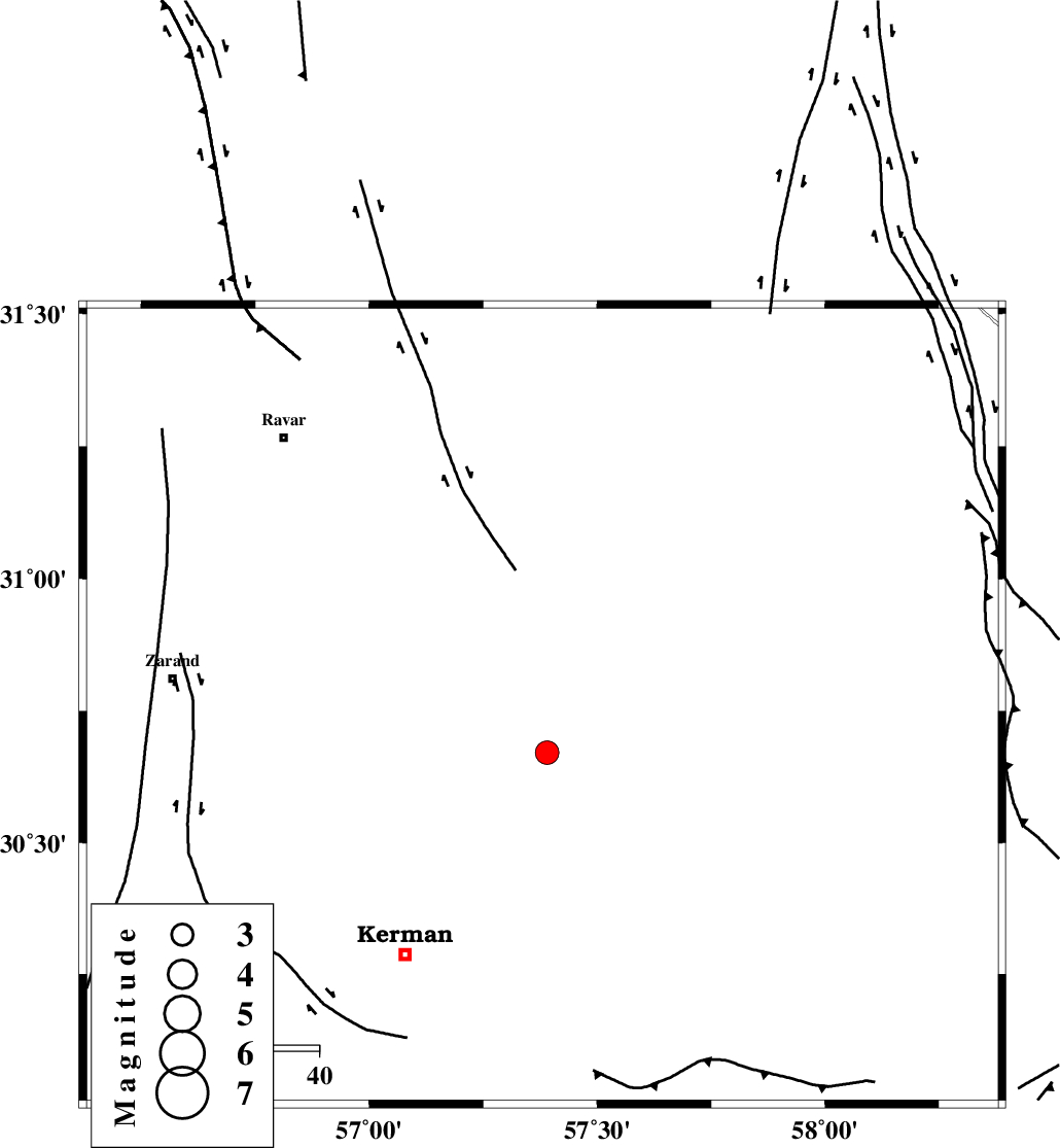 GOLBAF_SIRCH_F (Length: 114 km) , Distance to epicenter: 20 km | |