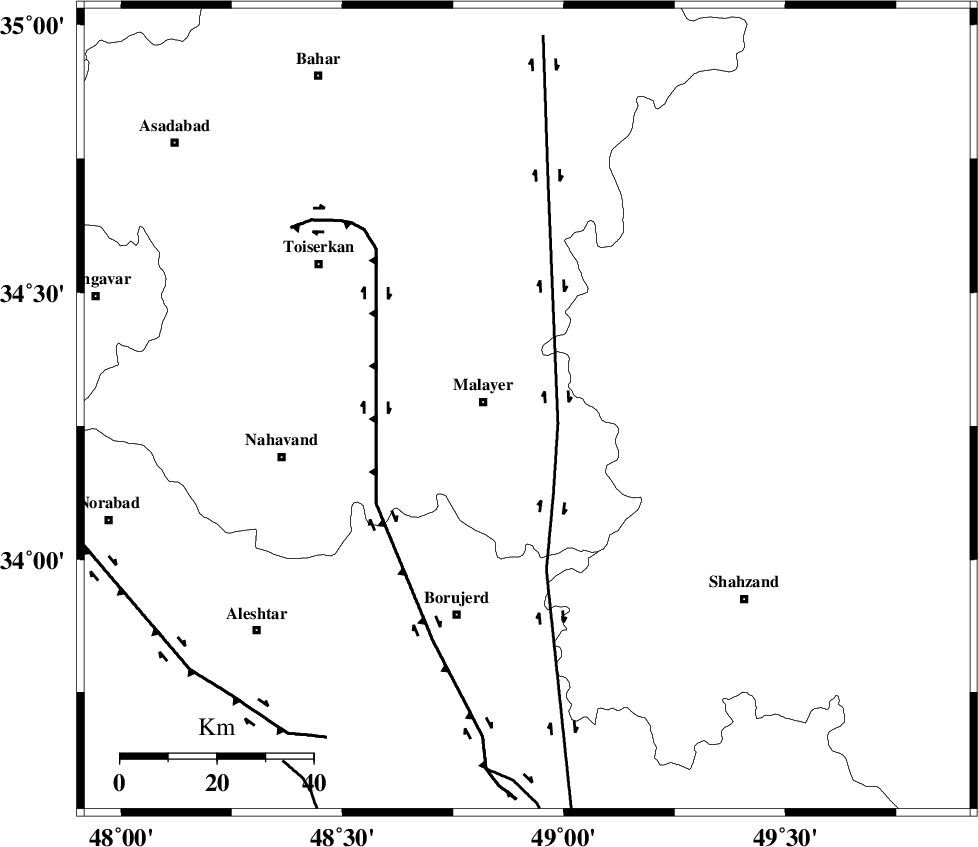 NAHAVAND_F (Length: 102 km) , Distance to epicenter: 46 km | |