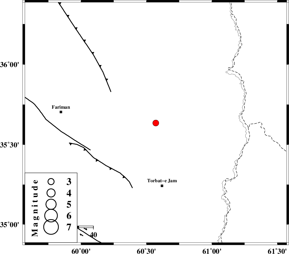 TORBAT_E_JAM_F2 (Length: 57 km) , Distance to epicenter: 43 km | |