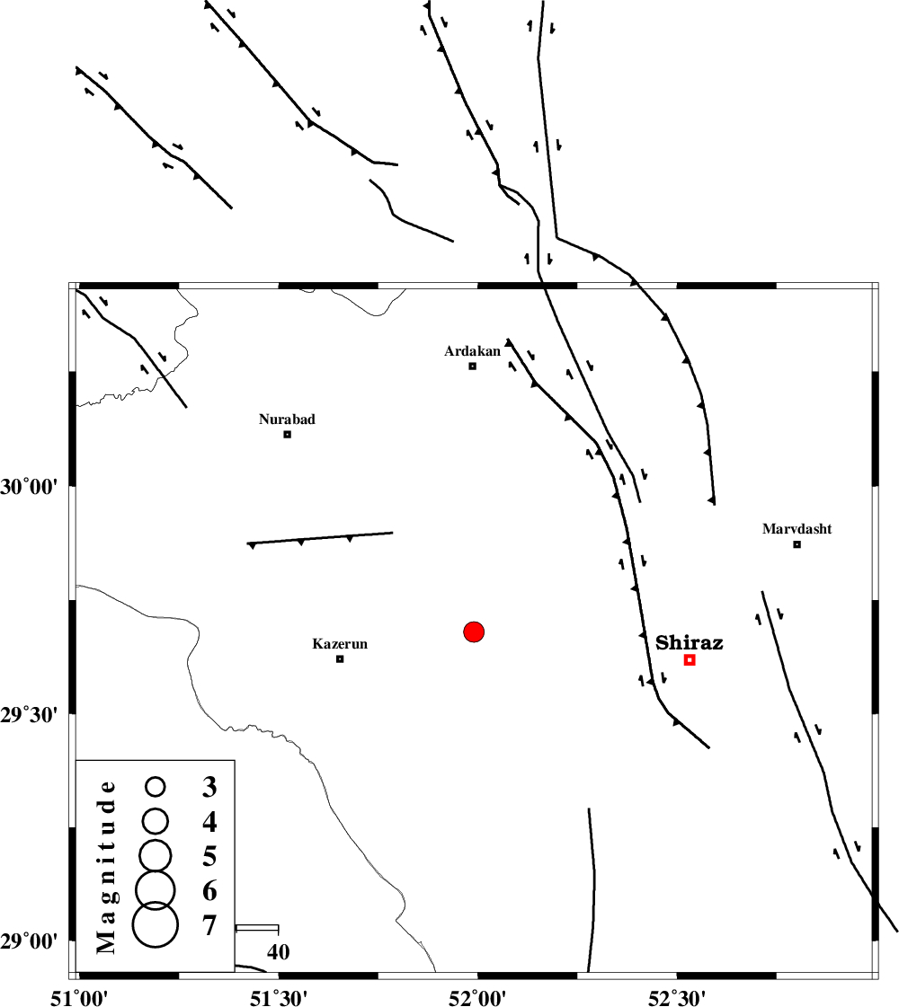 | KAZERUN_F (Length: 96 km) , Distance to epicenter: 44 km | |