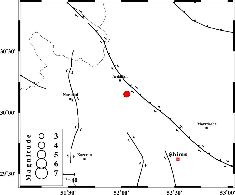 KAZERUN_F (Length: 96 km) , Distance to epicenter: 46 km