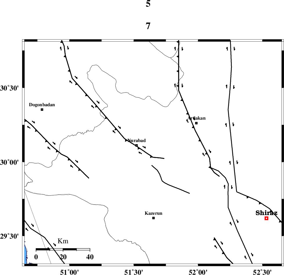| KAZERUN_F (Length: 96 km) , Distance to epicenter: 7 km | |