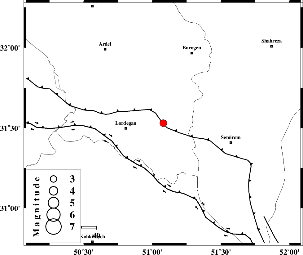 | SABZKUH_F (Length: 67 km) , Distance to epicenter: 29 km | |