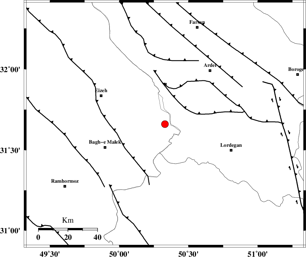 SABZKUH_F (Length: 67 km) , Distance to epicenter: 18 km