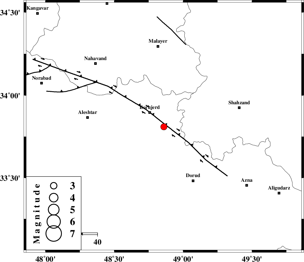 | MAIN_ZAGROS_R_F (Length: 1106 km) , Distance to epicenter: 41 km | |