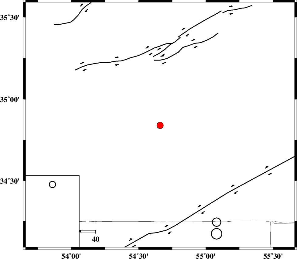 | DORUNEH_F (Length: 713 km) , Distance to epicenter: 65 km | |