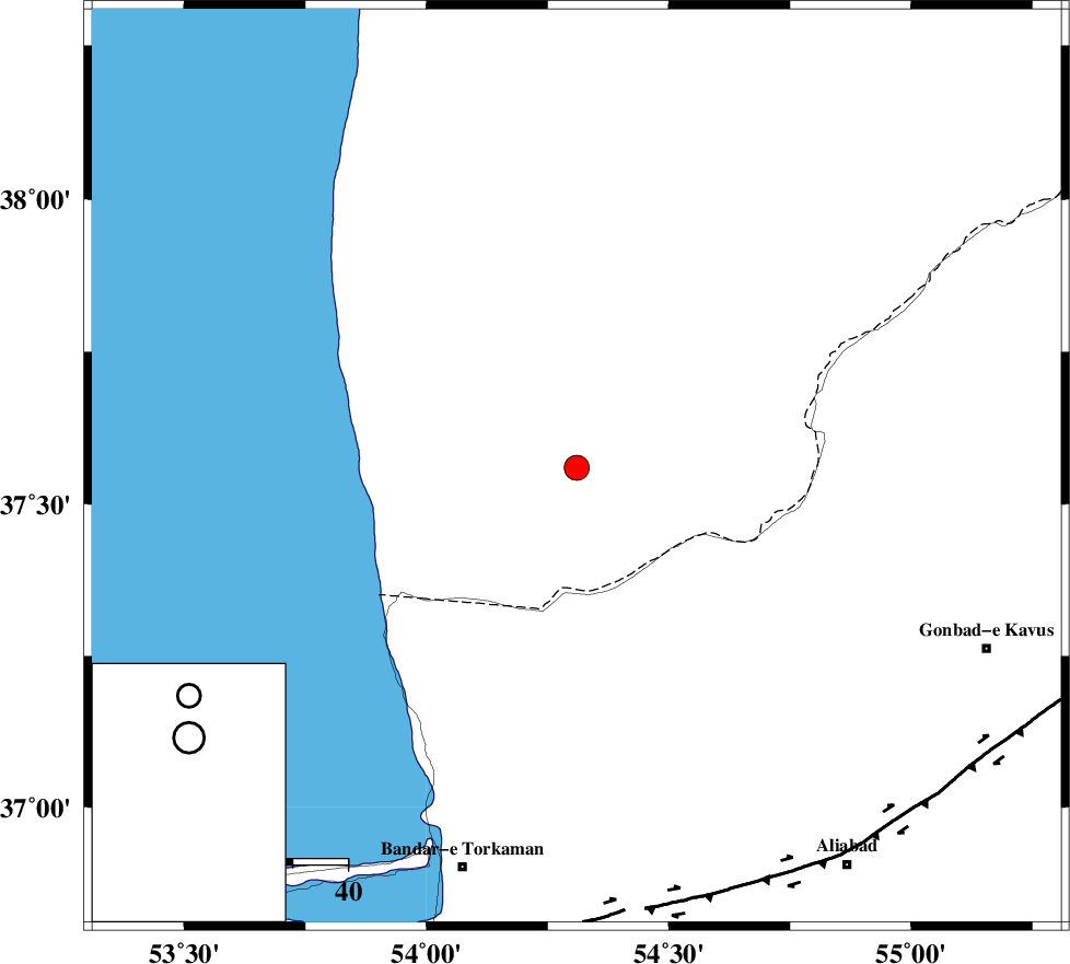| KHAZAR_F (Length: 523 km) , Distance to epicenter: 80 km | |