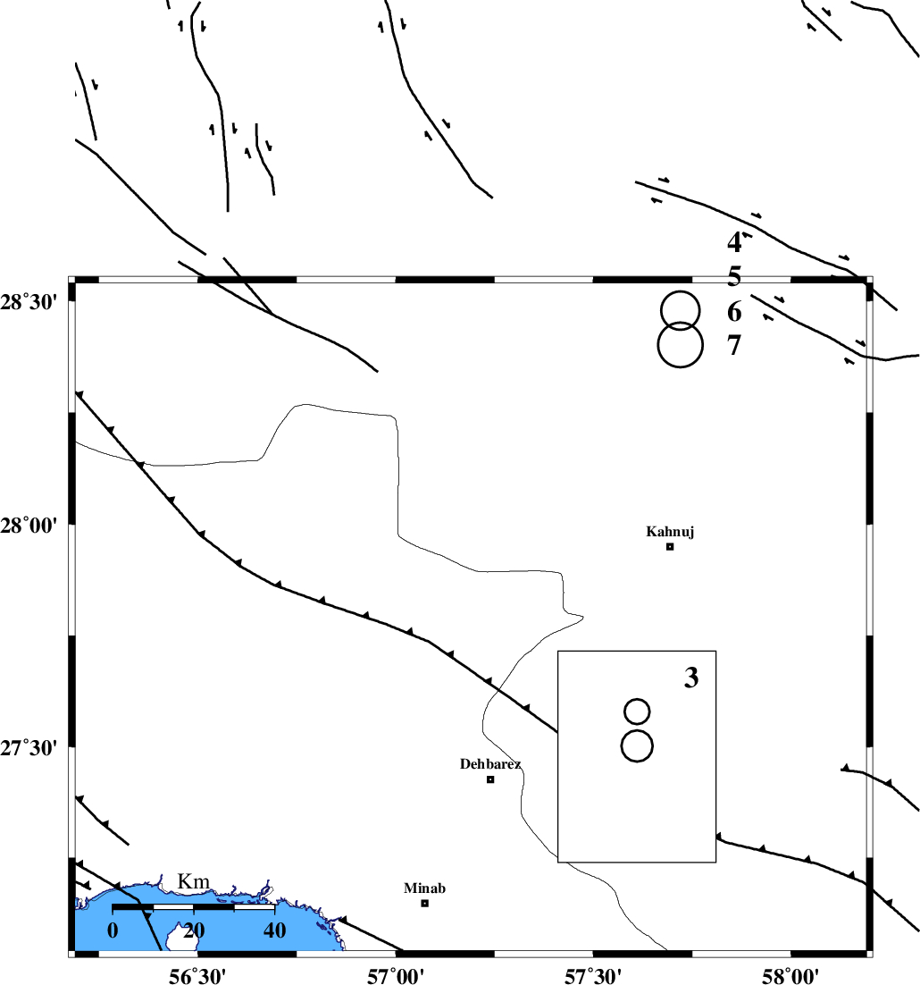 | ZENDAN_MINAB_F_Z1 (Length: 183 km) , Distance to epicenter: 27 km | |