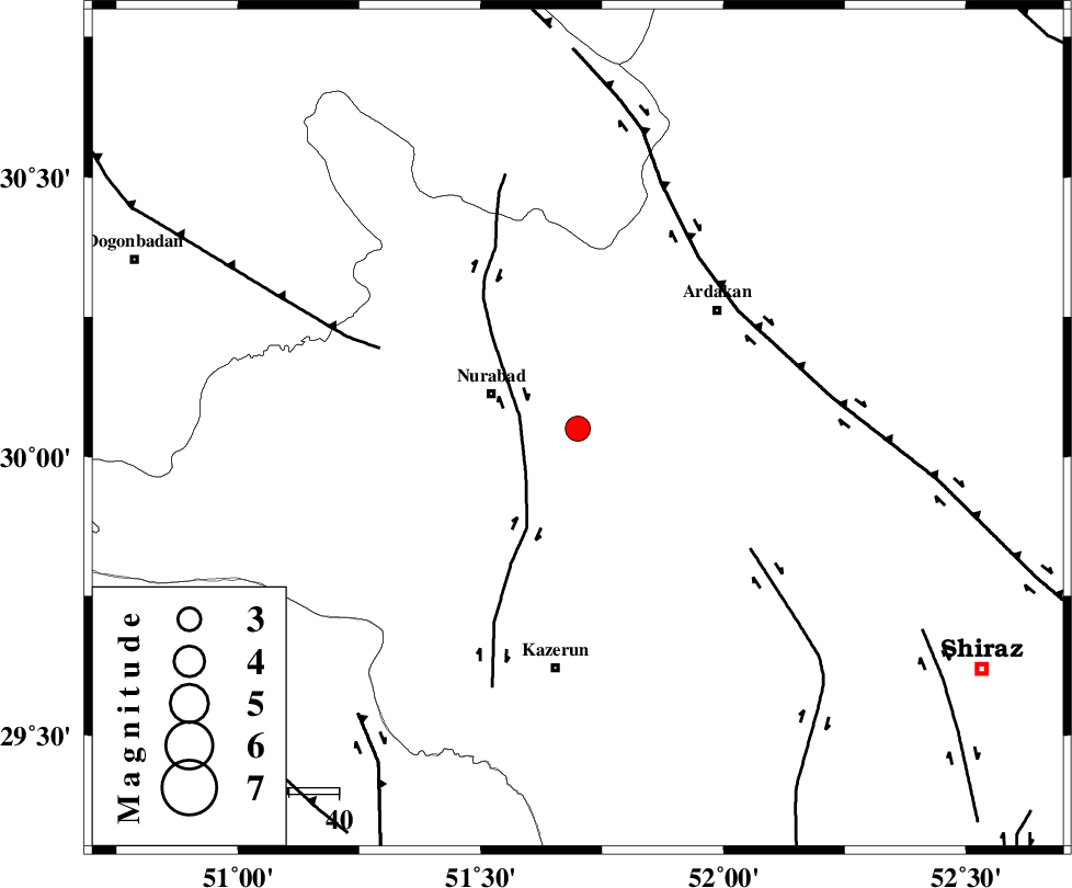 | KAZERUN_F (Length: 96 km) , Distance to epicenter: 12 km | |