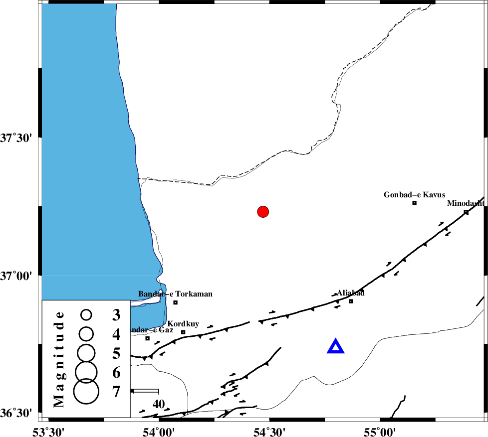 | KHAZAR_F (Length: 523 km) , Distance to epicenter: 42 km | |