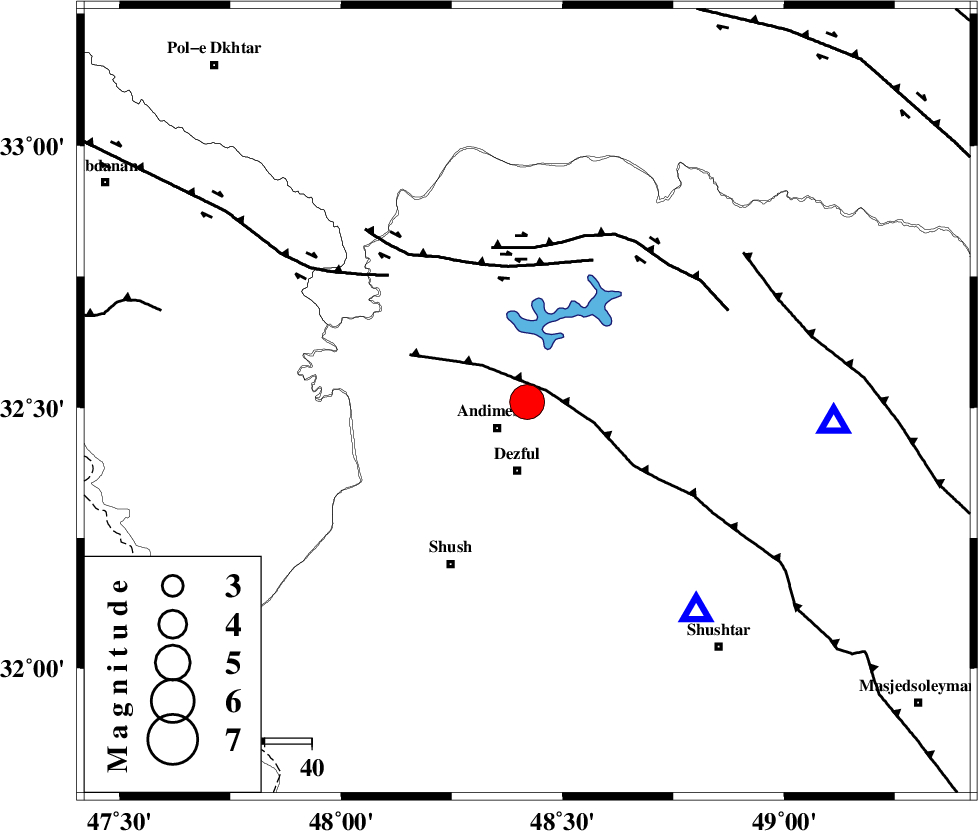 DEZFUL_EMBAYMENT (Length: 228 km) , Distance to epicenter: 5 km | |