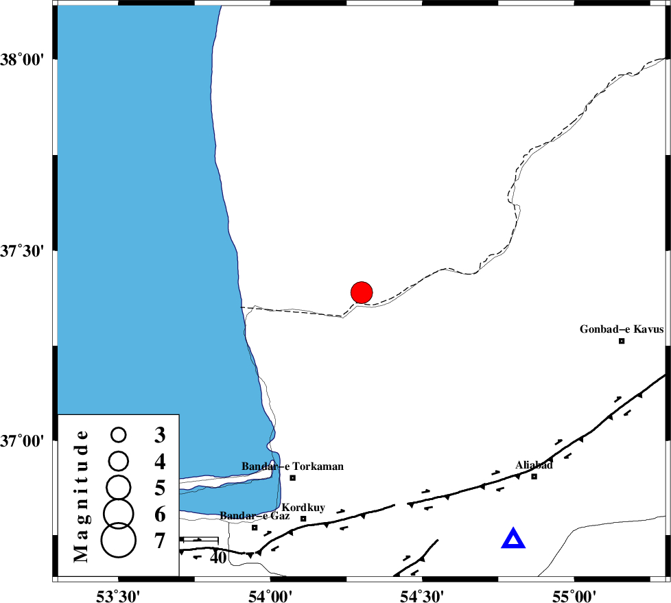 | KHAZAR_F (Length: 523 km) , Distance to epicenter: 62 km | |