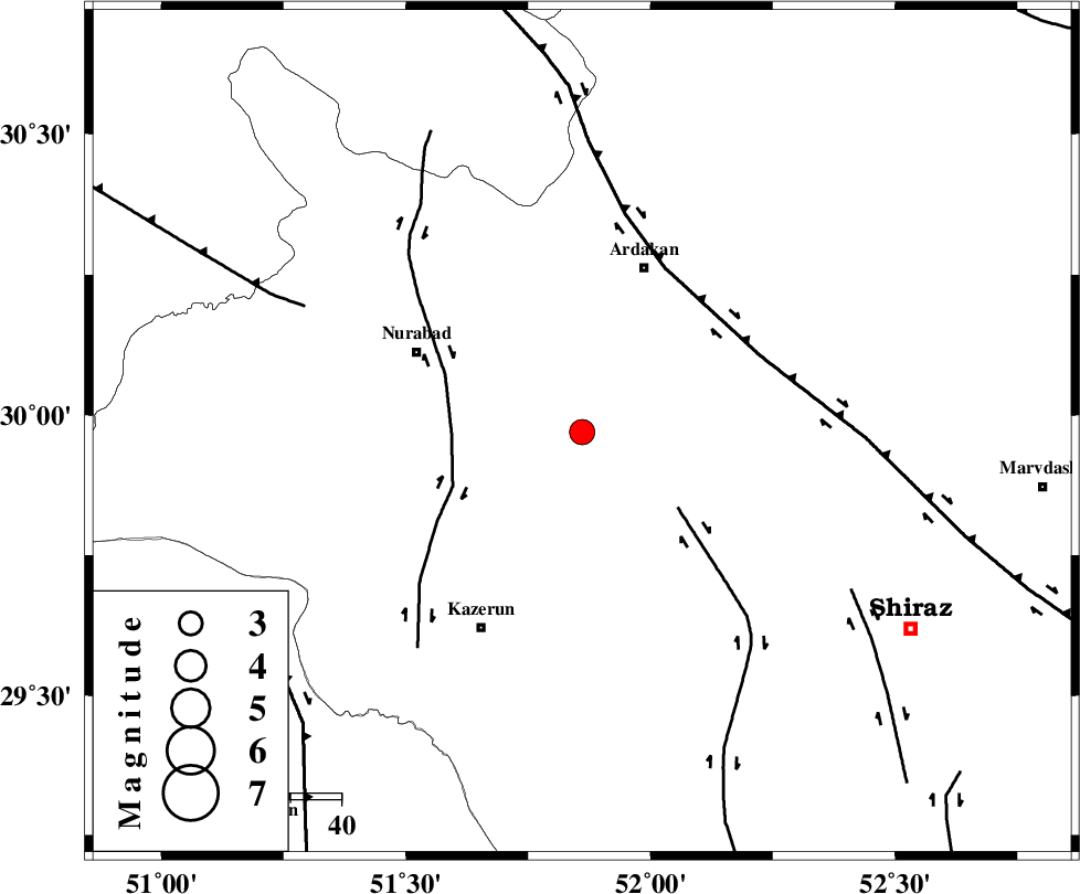 | KAZERUN_F (Length: 96 km) , Distance to epicenter: 26 km | |