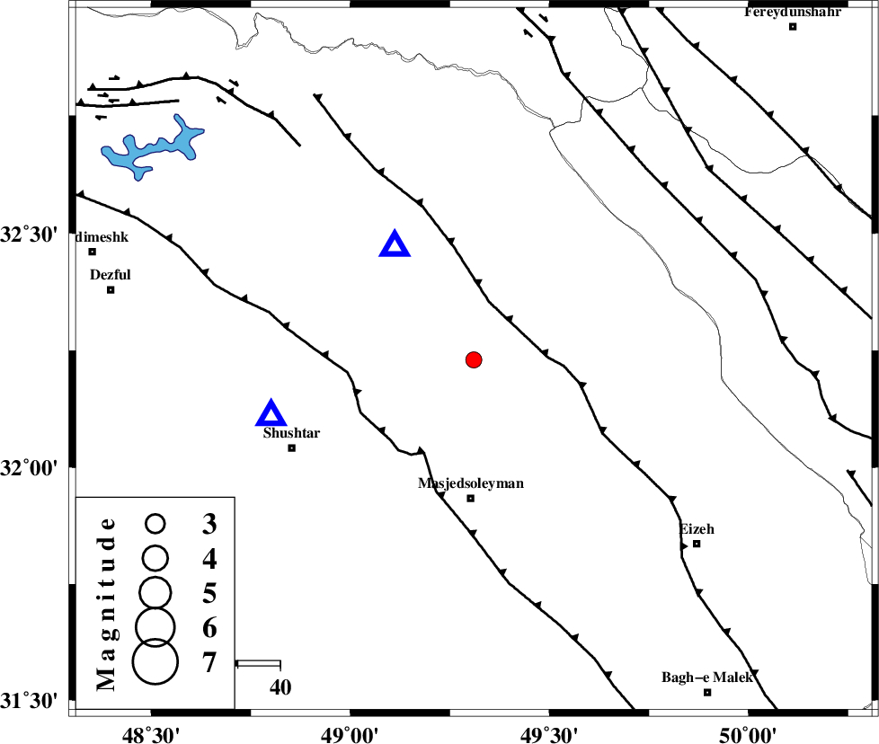 DEZFUL_EMBAYMENT (Length: 228 km) , Distance to epicenter: 25 km | |