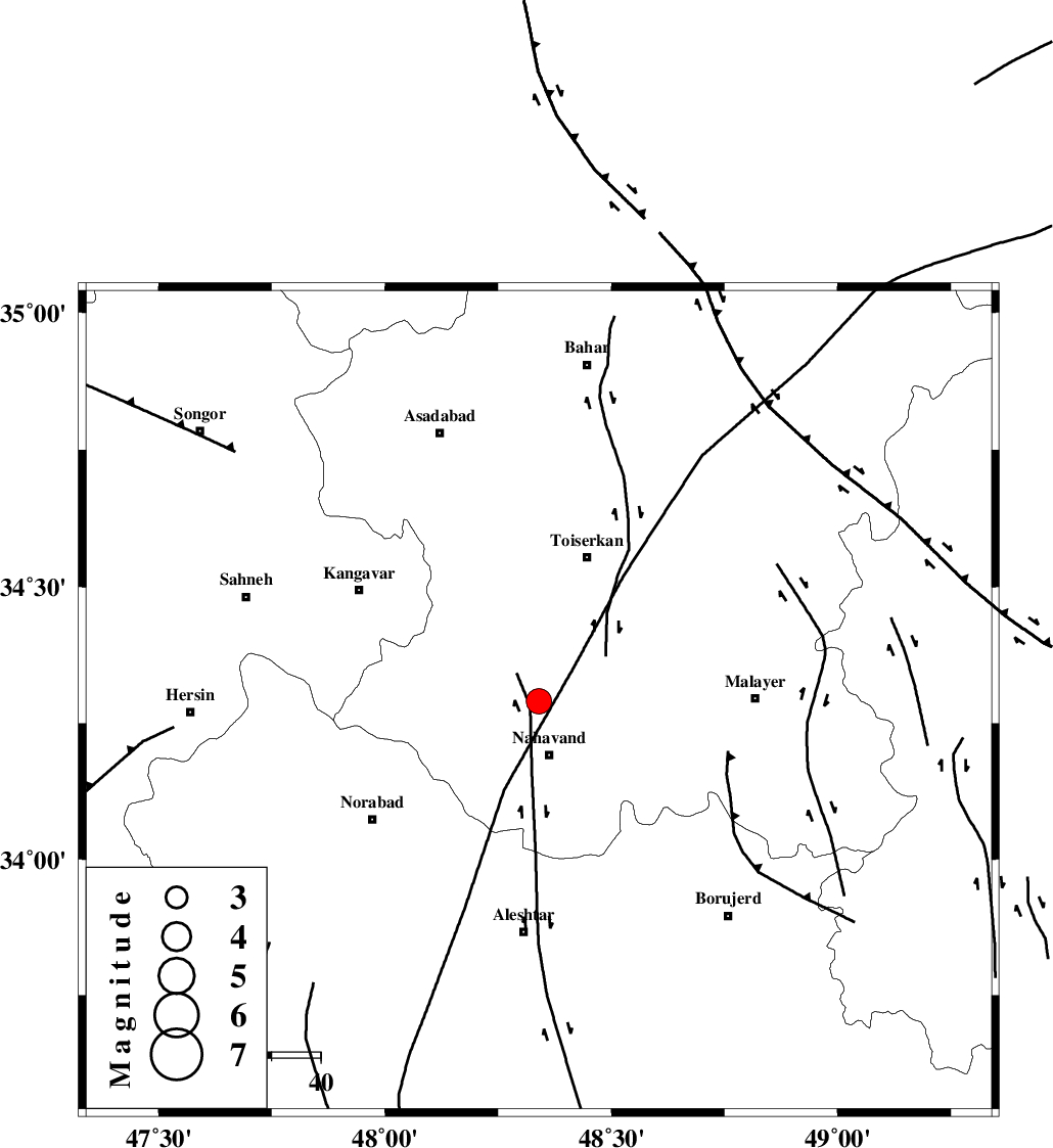 NAHAVAND_F (Length: 102 km) , Distance to epicenter: 6 km | |