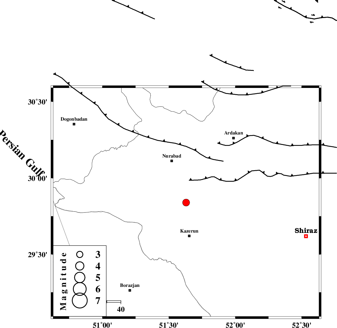 KAZERUN_F (Length: 96 km) , Distance to epicenter: 5 km | |