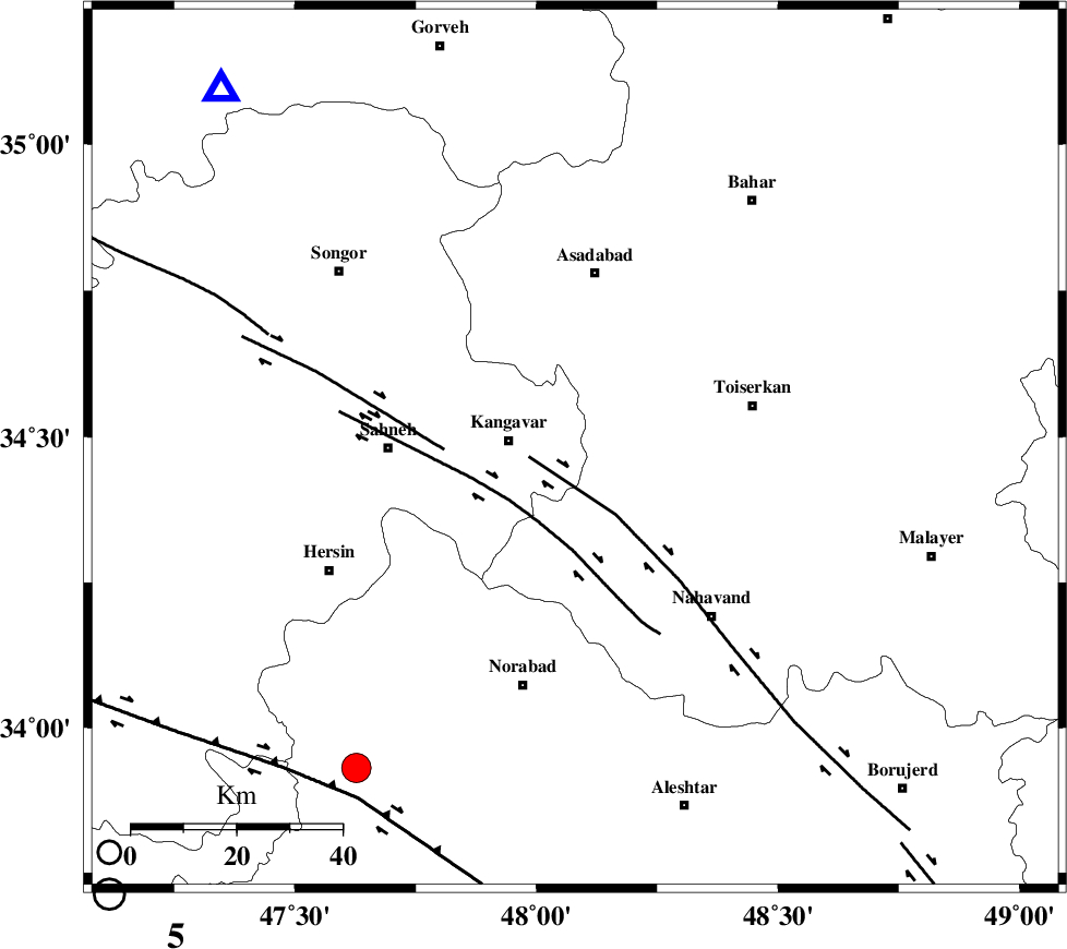 NAHAVAND_F (Length: 102 km) , Distance to epicenter: 9 km | |