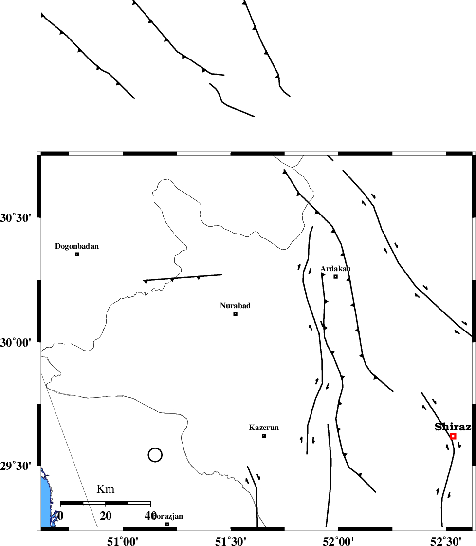 KAZERUN_F (Length: 96 km) , Distance to epicenter: 5 km | |
