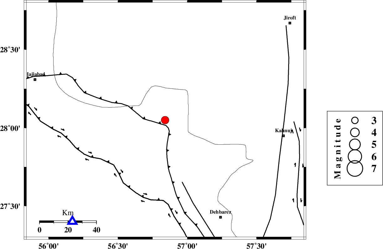 ZENDAN_MINAB_F_Z1 (Length: 183 km) , Distance to epicenter: 46 km