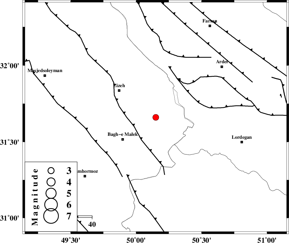 SABZKUH_F (Length: 67 km) , Distance to epicenter: 30 km