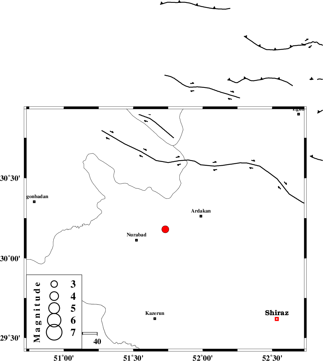 KAZERUN_F (Length: 96 km) , Distance to epicenter: 19 km | |