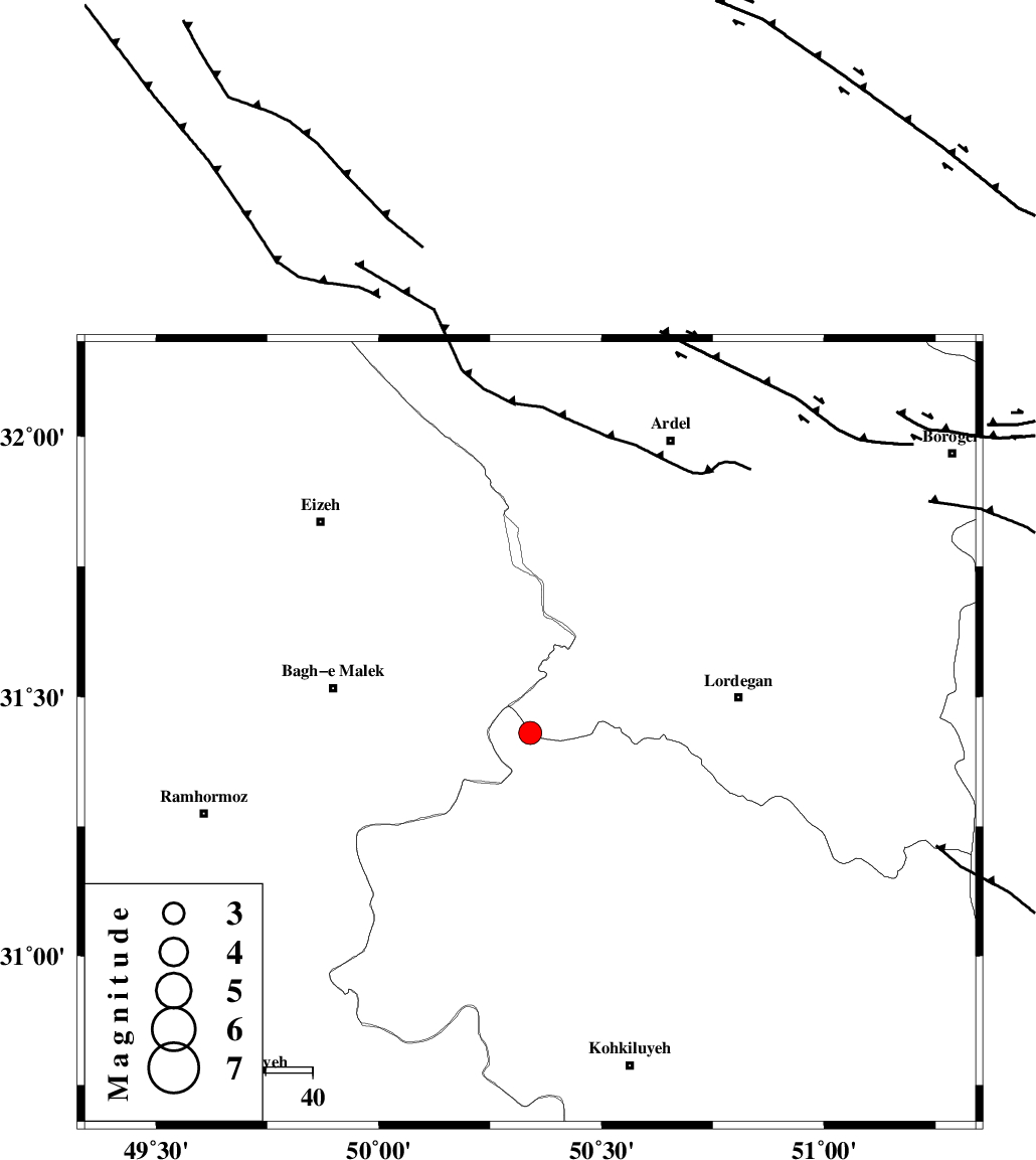 SABZKUH_F (Length: 67 km) , Distance to epicenter: 38 km | |