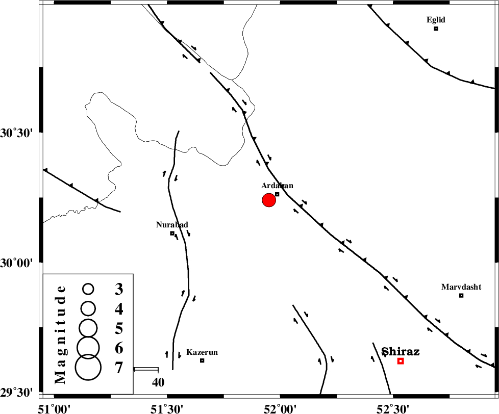 KAZERUN_F (Length: 96 km) , Distance to epicenter: 40 km