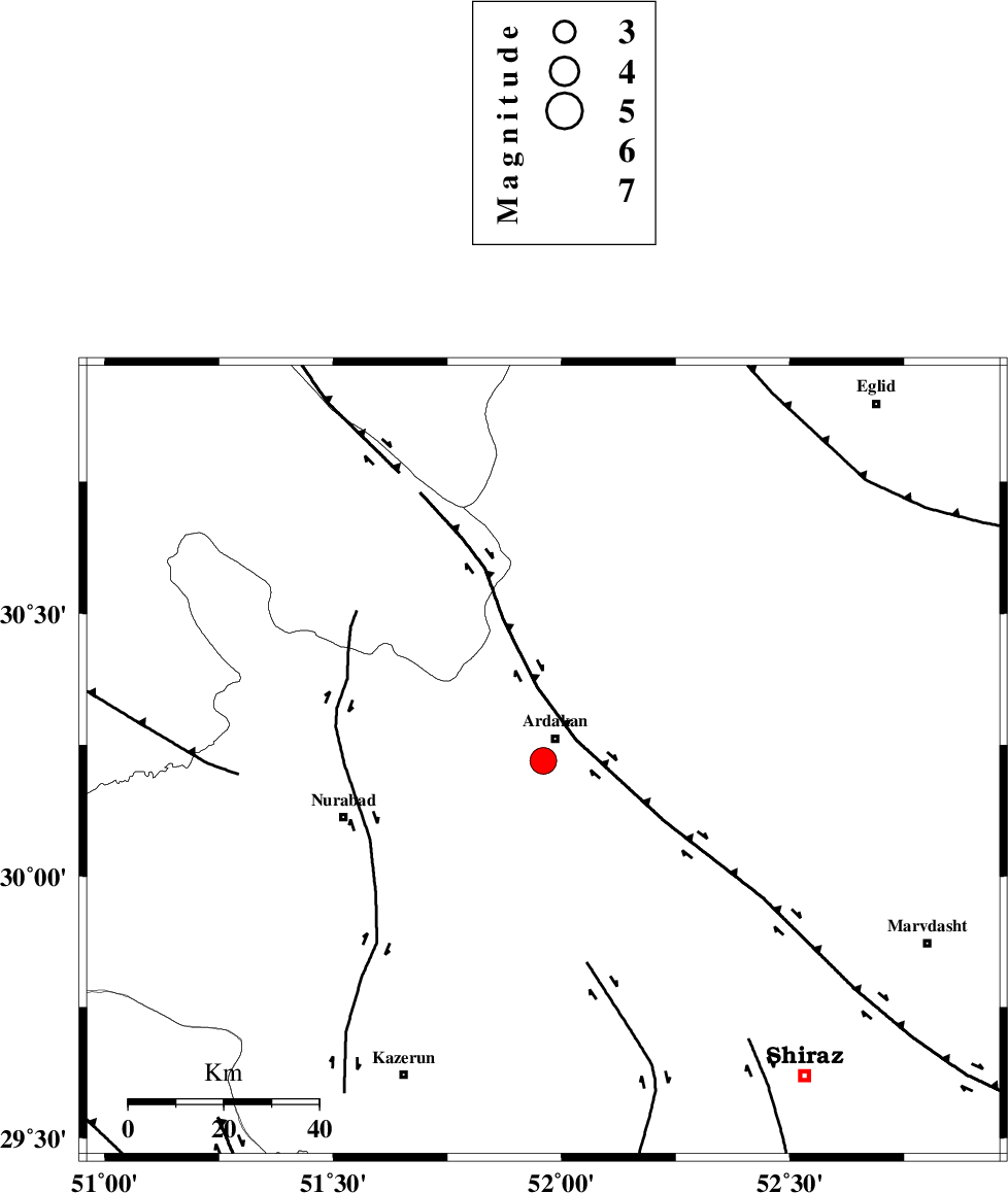 KAZERUN_F (Length: 96 km) , Distance to epicenter: 40 km | |