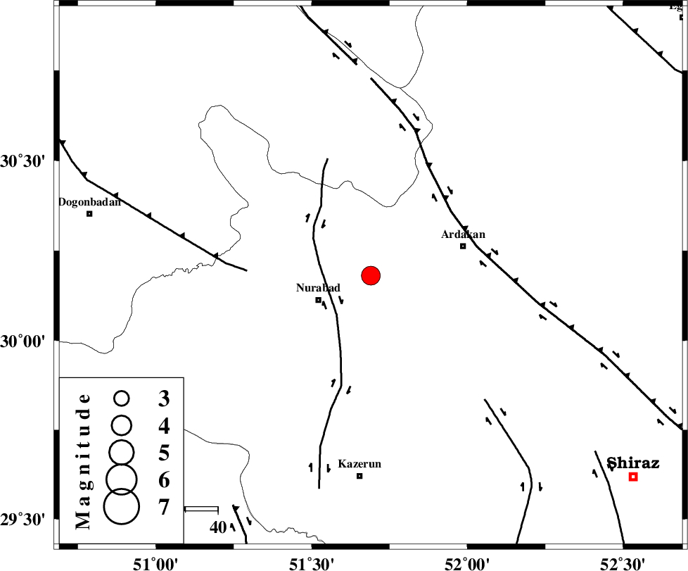 KAZERUN_F (Length: 96 km) , Distance to epicenter: 16 km | |