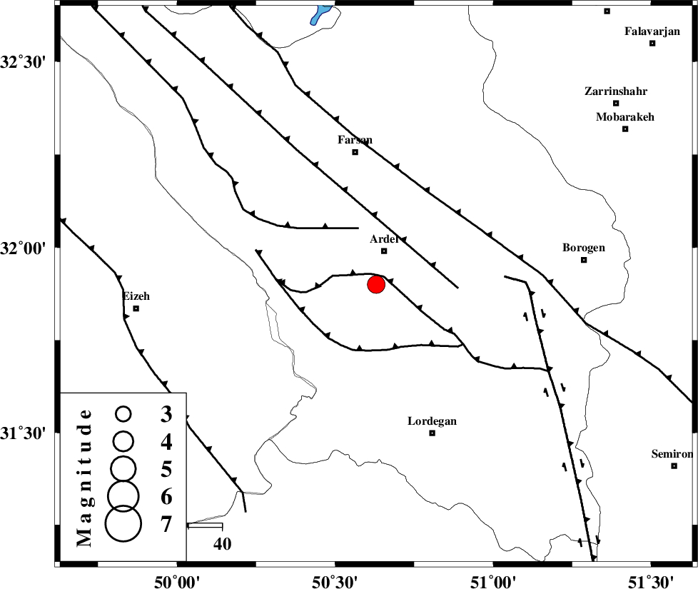 ZARDKUH_F (Length: 139 km) , Distance to epicenter: 18 km | |