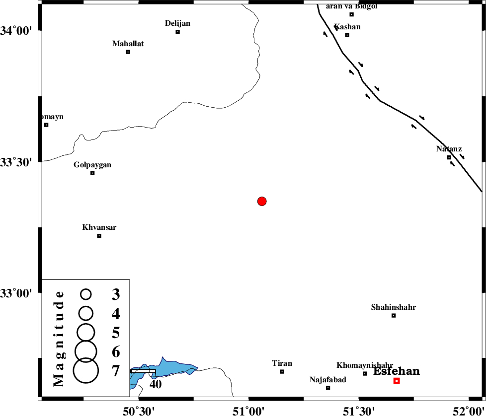 KASHAN_F (Length: 44 km) , Distance to epicenter: 66 km | |