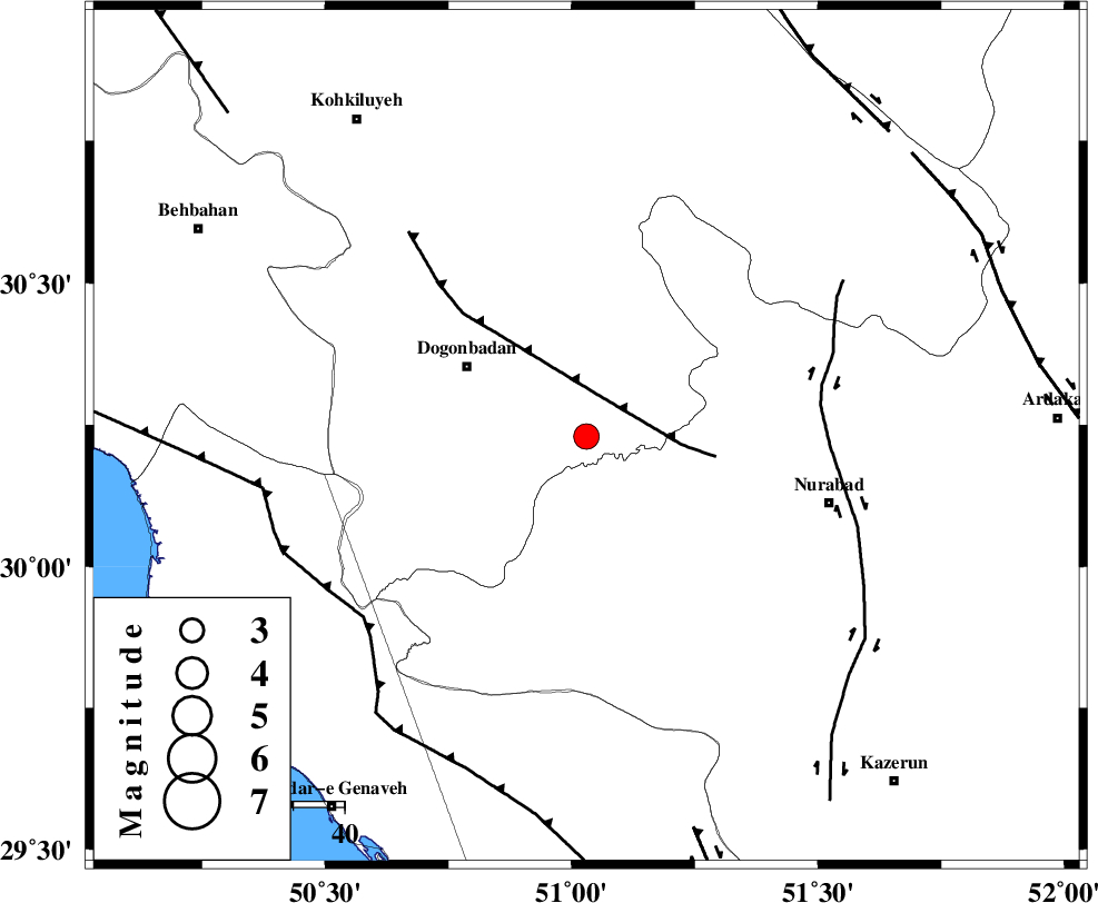 KAZERUN_F (Length: 96 km) , Distance to epicenter: 46 km