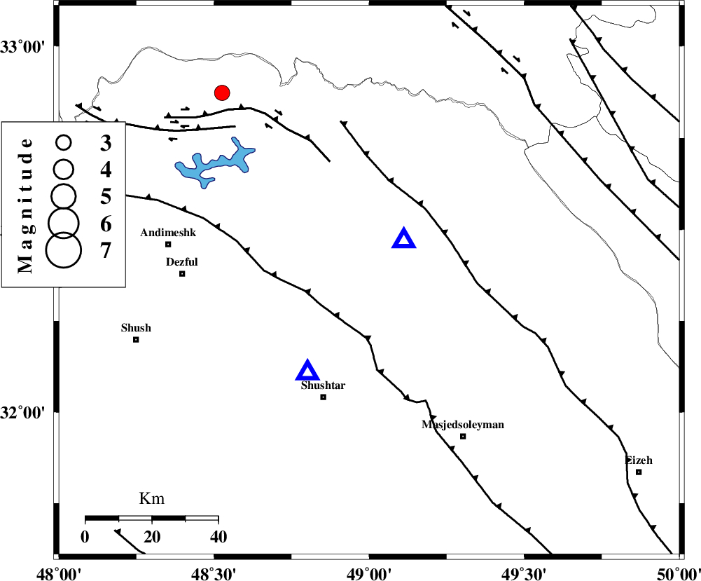 DEZFUL_EMBAYMENT (Length: 228 km) , Distance to epicenter: 15 km | |