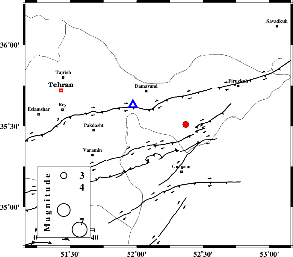 GARMSAR_F (Length: 77 km) , Distance to epicenter: 30 km | |