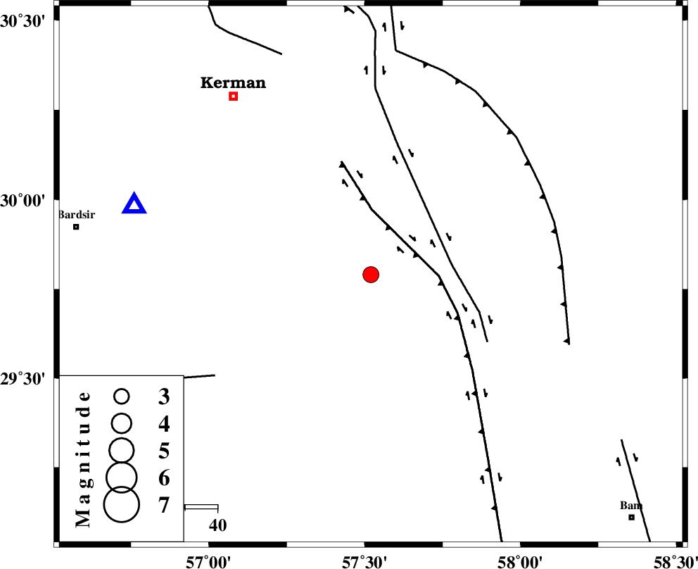 GOLBAF_SIRCH_F (Length: 114 km) , Distance to epicenter: 25 km | |