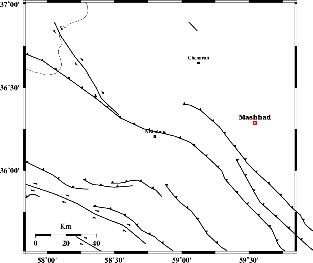 NAYSHABUR_F (Length: 74 km) , Distance to epicenter: 3 km