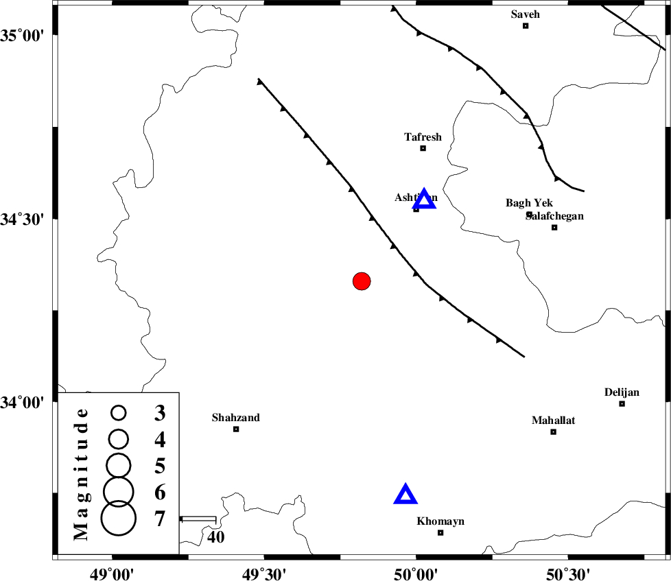 TAFRESH_F (Length: 117 km) , Distance to epicenter: 14 km
