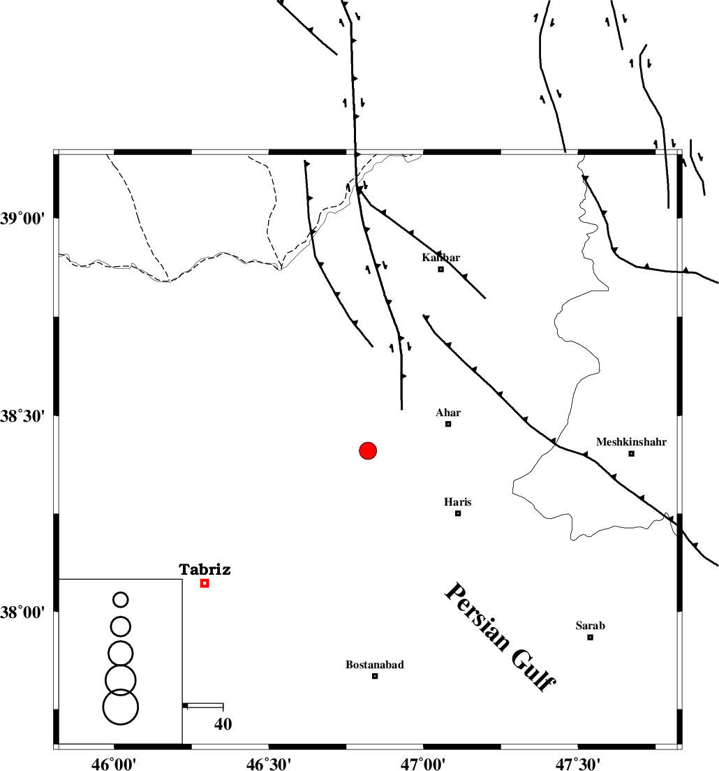 | N_TABRIZ_F1 (Length: 222 km) , Distance to epicenter: 50 km | |