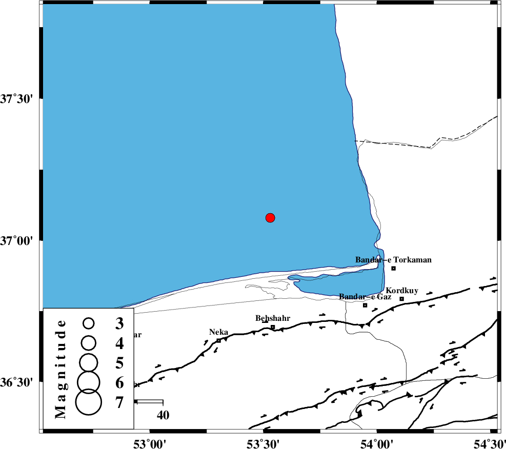 | KHAZAR_F (Length: 523 km) , Distance to epicenter: 44 km | |