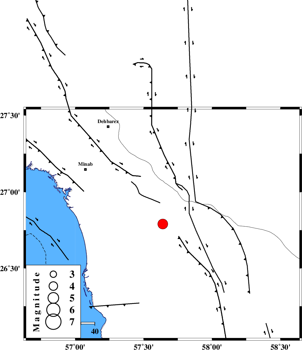 | ZENDAN_MINAB_F_Z1 (Length: 183 km) , Distance to epicenter: 38 km | |