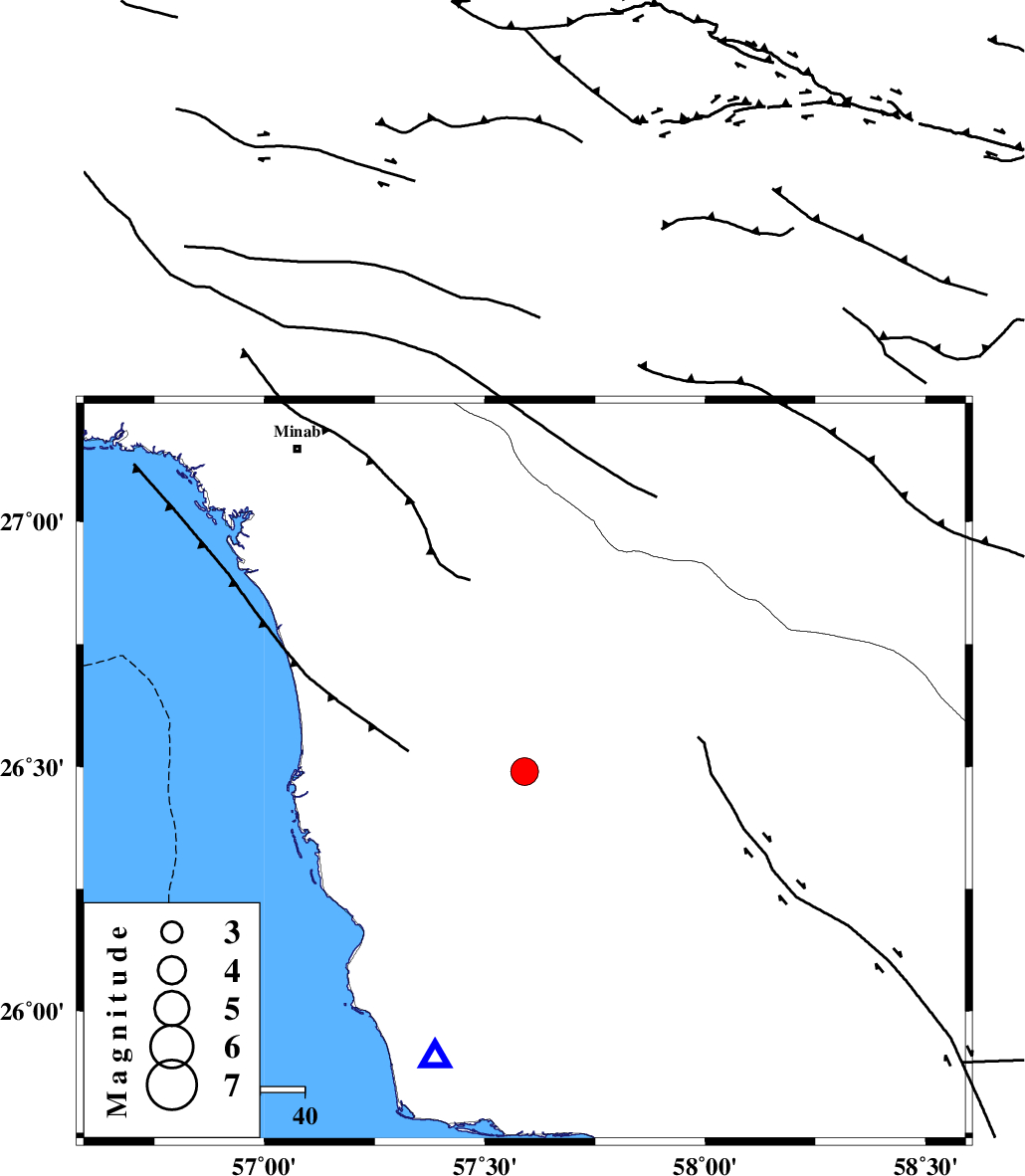 ZENDAN_MINAB_F_Z2 (Length: 63 km) , Distance to epicenter: 13 km