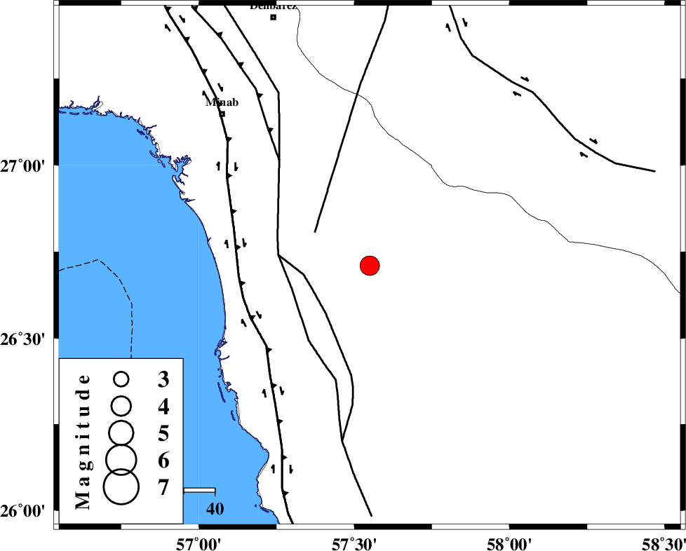 ZENDAN_MINAB_F_Z1 (Length: 183 km) , Distance to epicenter: 26 km