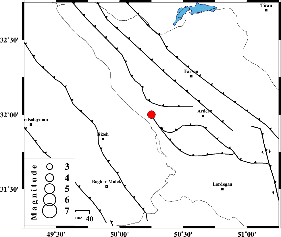 ZARDKUH_F (Length: 139 km) , Distance to epicenter: 9 km | |