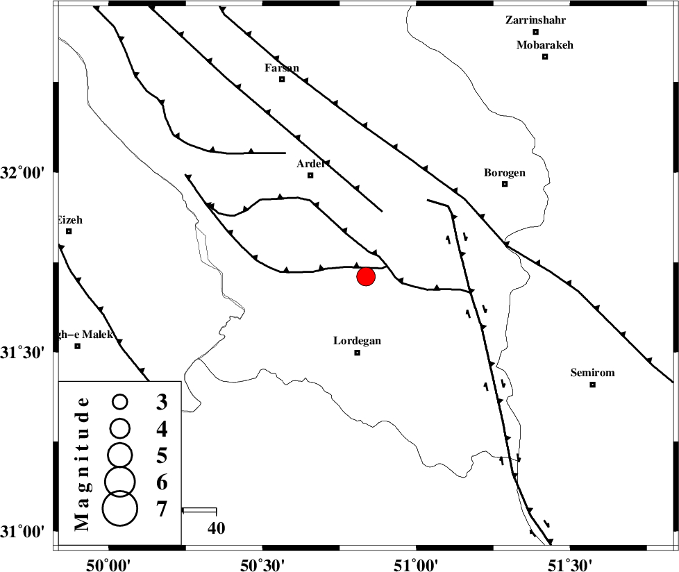 SABZKUH_F (Length: 67 km) , Distance to epicenter: 6 km | |