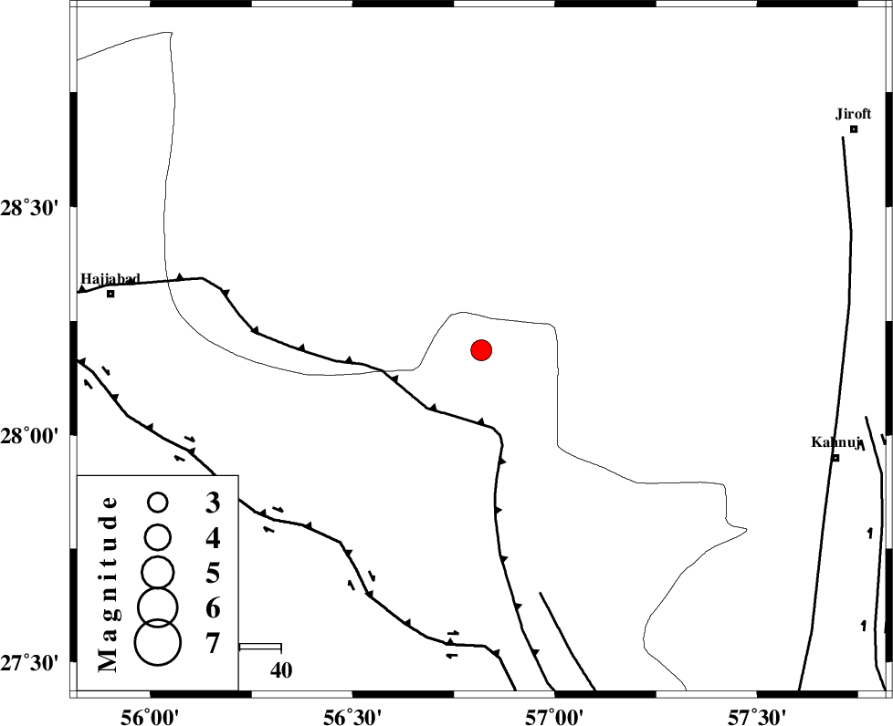ZENDAN_MINAB_F_Z1 (Length: 183 km) , Distance to epicenter: 61 km