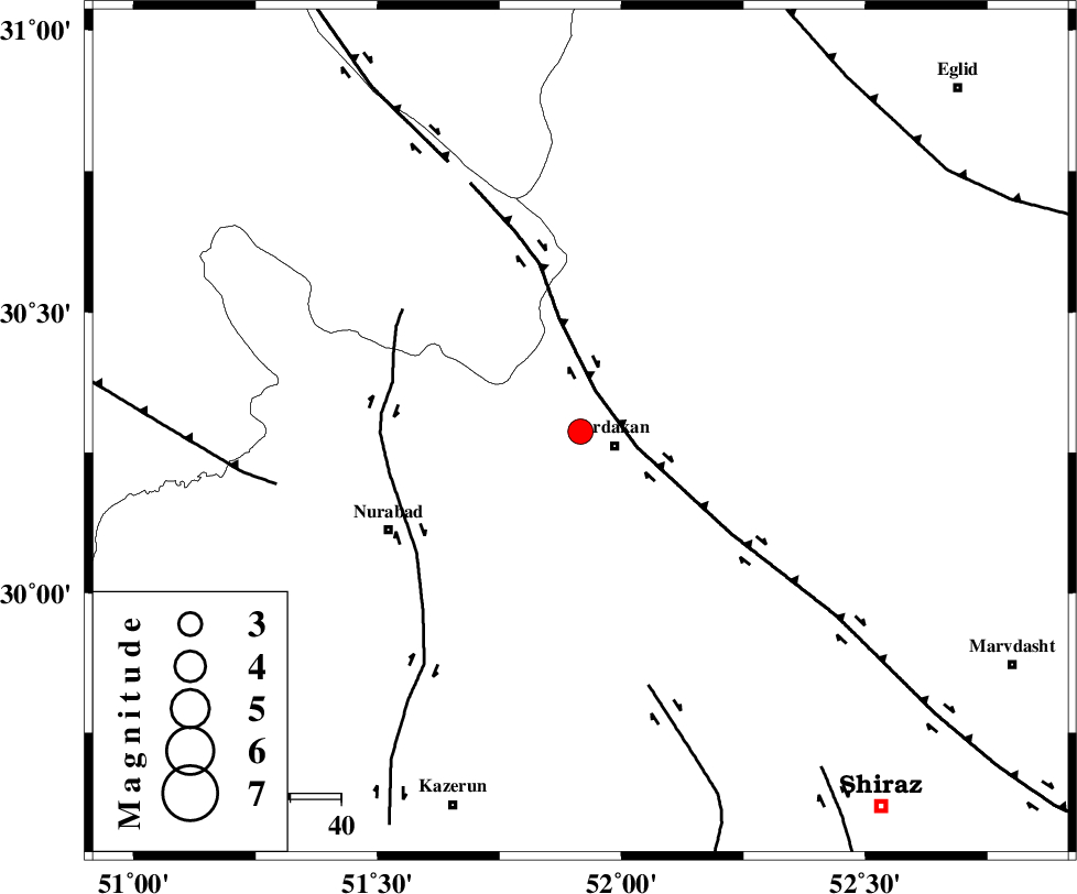 | KAZERUN_F (Length: 96 km) , Distance to epicenter: 38 km | |