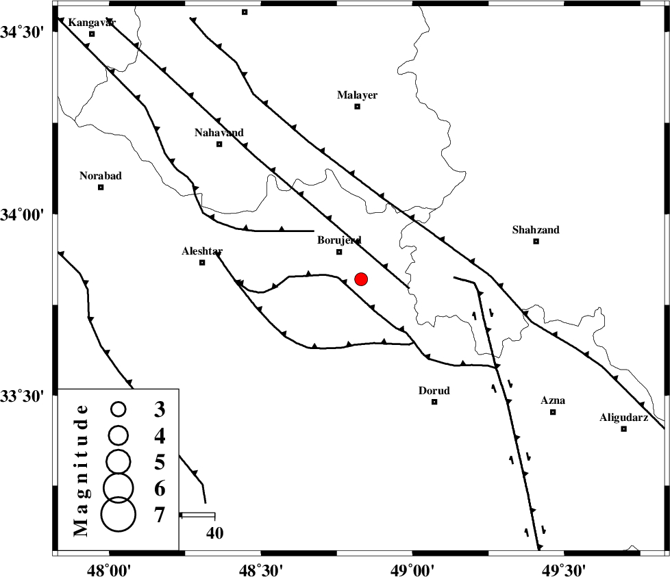 | MAIN_ZAGROS_R_F (Length: 1106 km) , Distance to epicenter: 43 km | |
