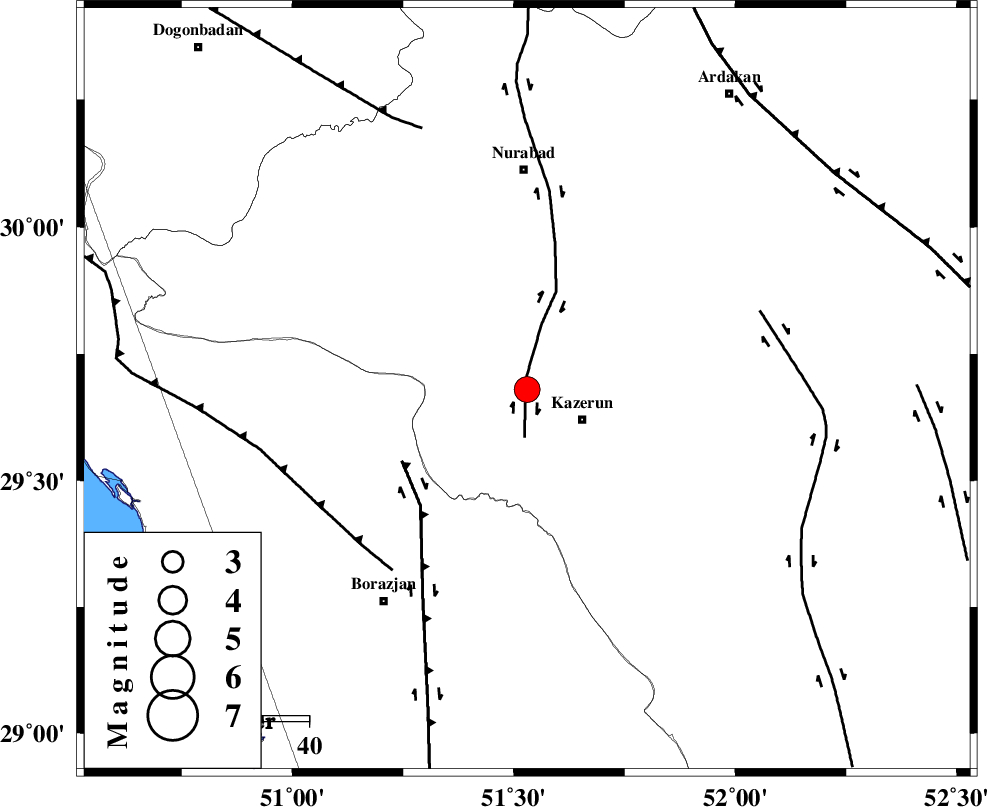 | KAZERUN_F (Length: 96 km) , Distance to epicenter: 3 km | |