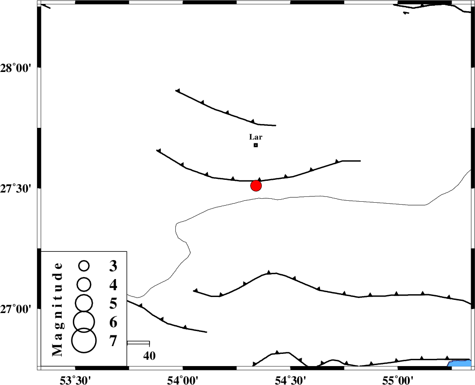 | LAR_F (Length: 99 km) , Distance to epicenter: 3 km | |
